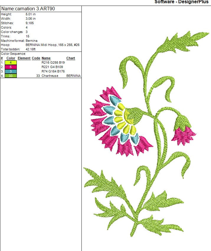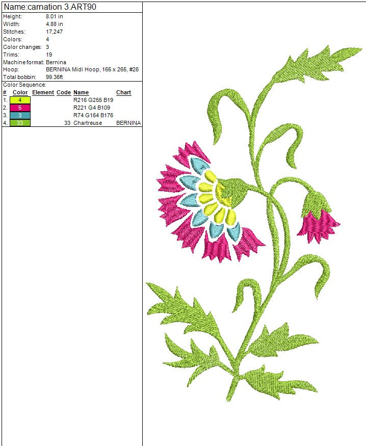 Carnation Single Stalk Flower Machine Embroidery Design