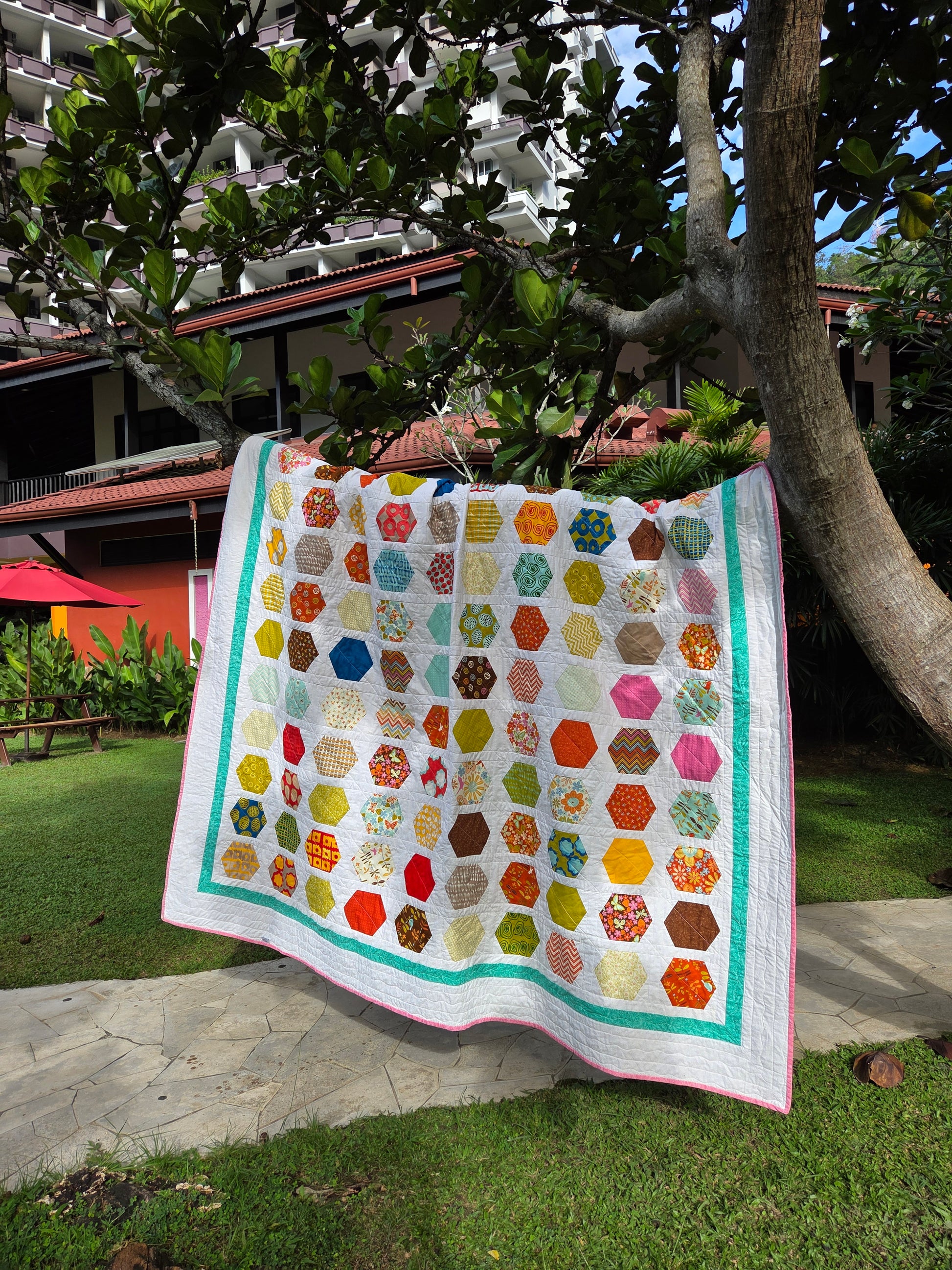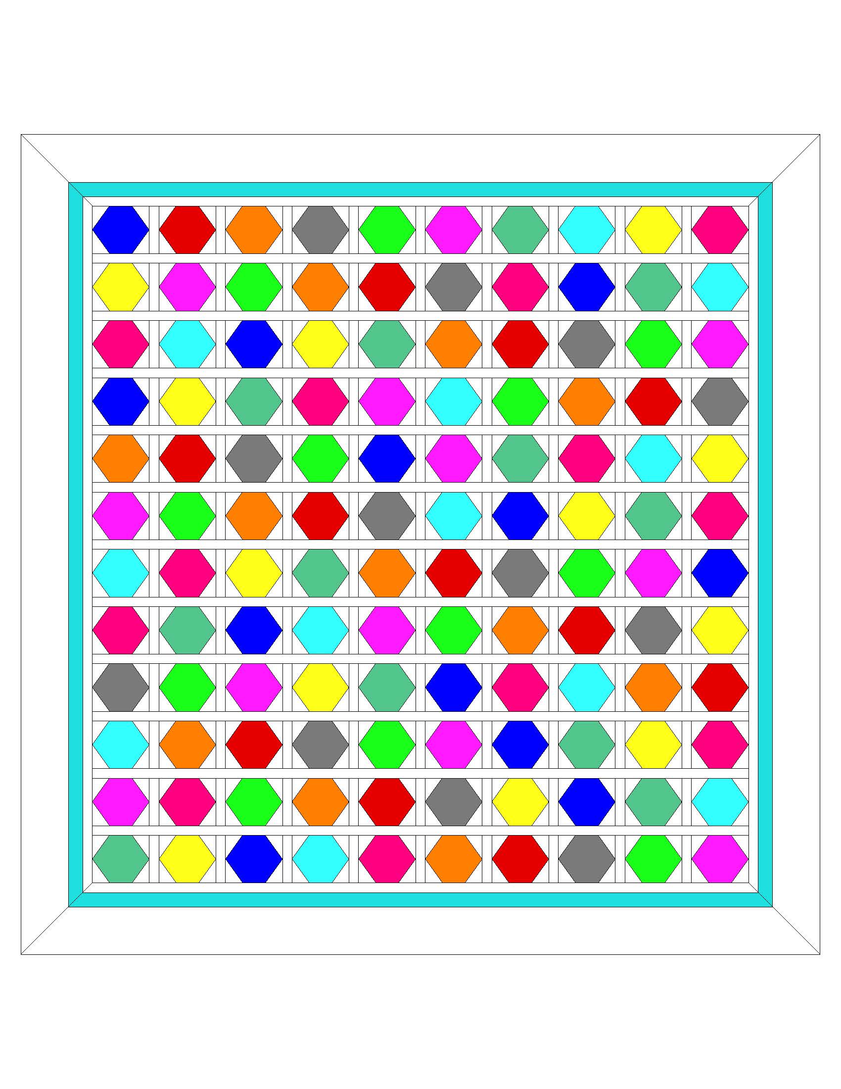 Bring your quilting dreams to life with this delightful hexagon quilt pattern! This downloadable PDF includes comprehensive instructions, clear diagrams, and easy-to-use templates to guide you through every step of creating a stunning 78" x 78" finished quilt. The pattern features a bold and colorful design. Perfect for intermediate quilters looking for a rewarding project.