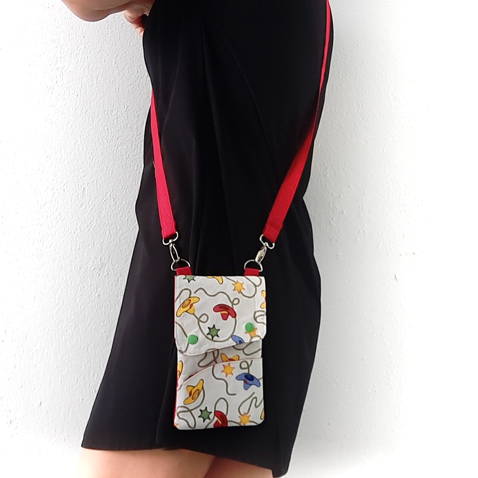 Crossbody Phone bag item comes with 2 pdf patterns and 1 pdf instructions. Bag has 2 pockets at front, one zippered pocket at back and a card slots inside for big model. You will need one zipper , 1/4 yard of canvas or cotton fabric, one yard lining and piece of interface. 2 strap rings,2 strap clip,1 strap adjustments, velcro and 1.5m strap.