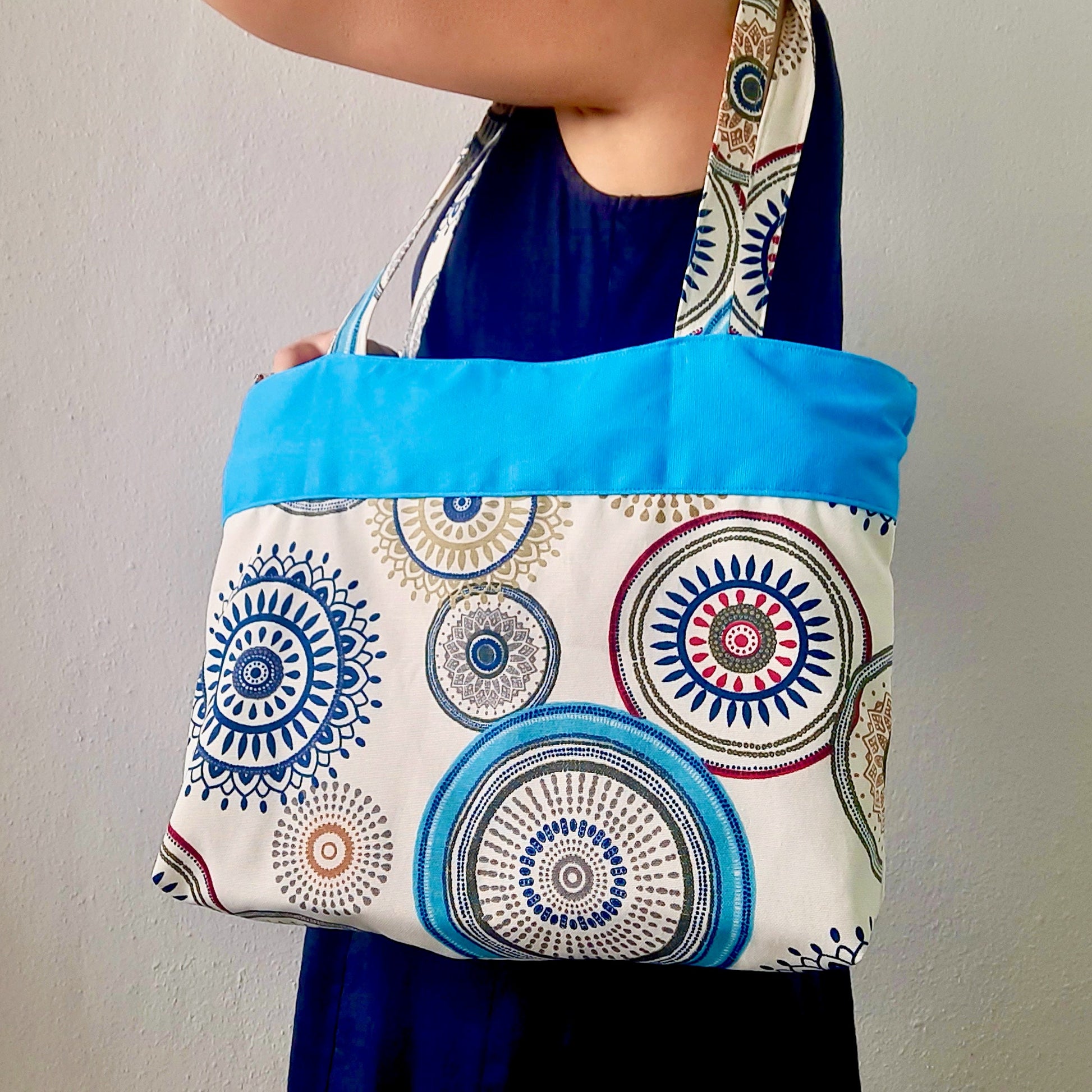 Shopping Tote Bag is with zipper, also it has one pocket inside, You can make two different colors like on a tutorial or choose one color. My fabrics are canvas cotton so I didn't need to use an interface but if you wish to make it thicker you can use an interface on the outer fabric.